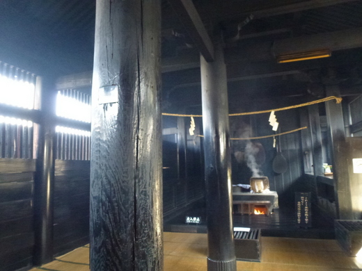 伝説の鬼退治が行われ鬼首が収められ、現在も鳴釜神事が執り行われている