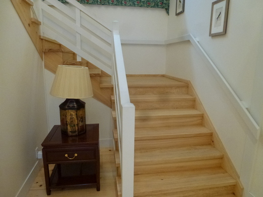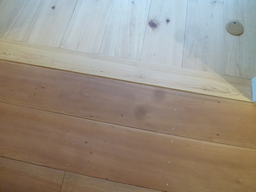 改装中:青木さんの地松の古材梁を2本活用、ドイツ・リボス自然素材塗料で綺麗に蘇る。