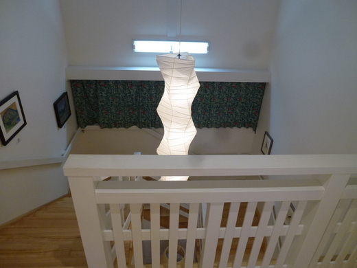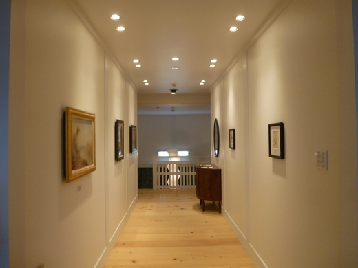 改築後(廊下)杉の古材柱を廊下でも活用、手洗いをしつらえ、トイレも増設。内装はスイス本漆喰左官&ドイツ・ウッドチップクロス張り