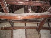 当時の貫工法(在来工法の原型)や竹小舞の土壁。地場の欅と松の曲がり梁が素晴らしい。