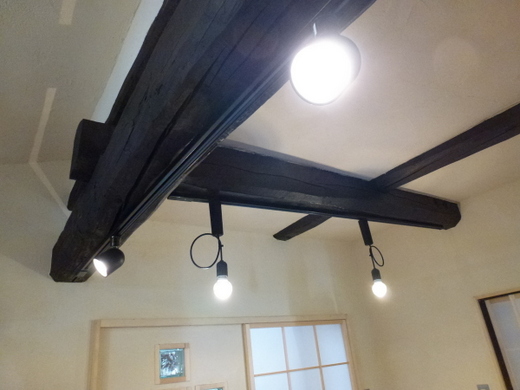 改装中:青木さんの地松の古材梁を2本活用、ドイツ・リボス自然素材塗料で綺麗に蘇る。