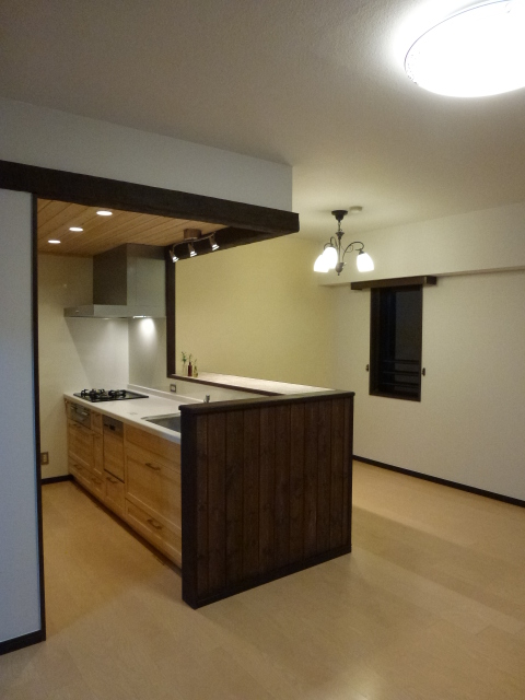 | 【Before】 【施工中】 キッチン台を組み、古材も取付け、LD側のカウンターもインストールして周辺を造作 仕上げ:弊社インテリアコーディネーターが詳細を現場で指示 古材に合わせて周りの造作家具なども自然塗料リボス+京都山中油店の鉱物顔料で着色 左官:カウンター天板、袖壁 天板の左官:クリスタルインレイ使用、蜜蝋で撥水加工 袖壁の左官:スイス漆喰、カルクウォール、エイジング加工 【After】 |