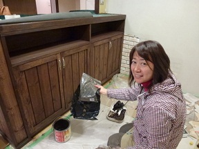 改装中:青木さんの地松の古材梁を2本活用、ドイツ・リボス自然素材塗料で綺麗に蘇る。