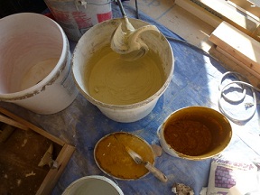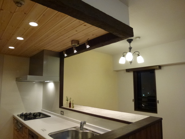 | 【Before】 【施工中】 キッチン台を組み、古材も取付け、LD側のカウンターもインストールして周辺を造作 仕上げ:弊社インテリアコーディネーターが詳細を現場で指示 古材に合わせて周りの造作家具なども自然塗料リボス+京都山中油店の鉱物顔料で着色 左官:カウンター天板、袖壁 天板の左官:クリスタルインレイ使用、蜜蝋で撥水加工 袖壁の左官:スイス漆喰、カルクウォール、エイジング加工 【After】 |