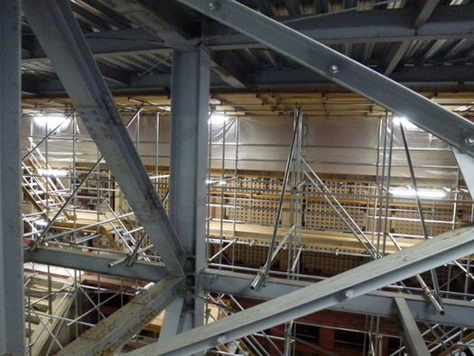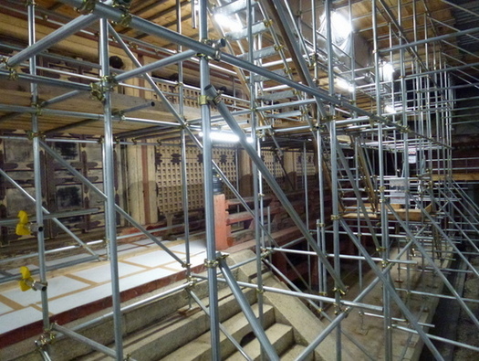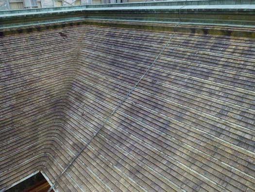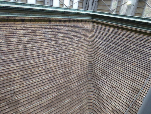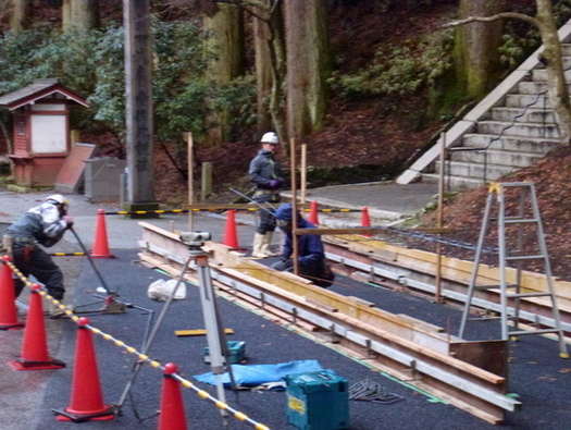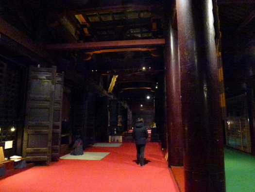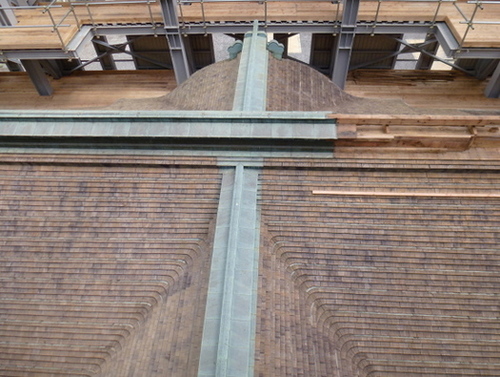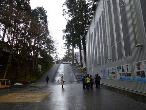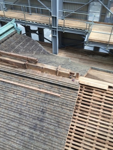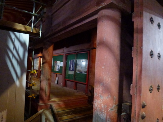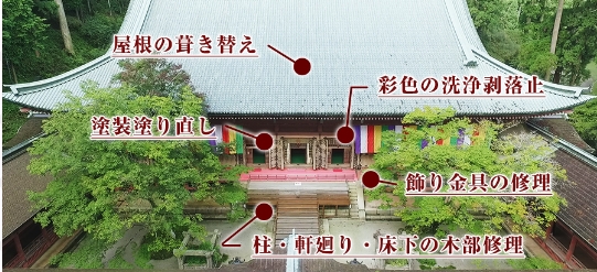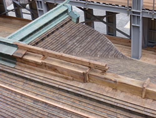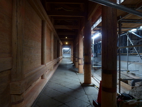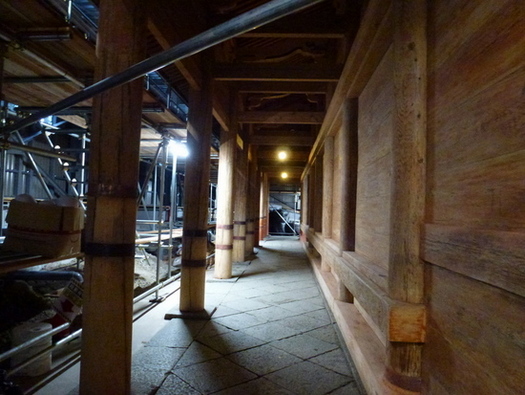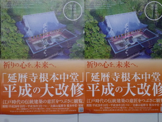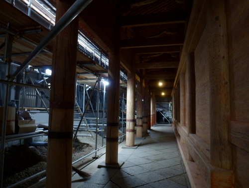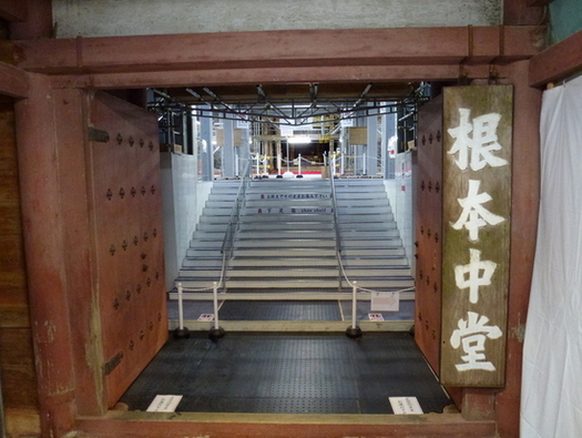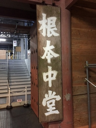 また、延暦寺は数々の名僧を輩出し、天台宗の基礎を築いた円仁、円珍、融通念仏宗の開祖良忍、浄土宗の開祖法然、浄土真宗の開祖親鸞、臨済宗の開祖栄西、曹洞宗の開祖道元、日蓮宗の開祖日蓮など新仏教の開祖や、日本仏教史上著名な僧の多くが若い日に比叡山で修行していることから「日本仏教の母山」とも称されています。その延暦寺の中で誰もが知る国宝「根本中堂」では、重要文化財の屋根や廻廊を平成28年度から約十年をかけ大改修しております。本堂の銅板葺き、廻廊のとち葺き改修、本堂全体の塗装彩色の復旧が主な内容であって、現在は屋根葺きが進行中であり低層部の見学が可能となっていります。また工事期間中も参拝ができるため本堂の「不滅の灯」を拝見いたしました。工事の視察は昨年の12月と今回の3月の2回行いました。
