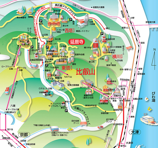 比叡山延曆寺は、滋賀県大津市坂本本町にあって標高848mの比叡山全域を境内とする寺院です。一般的には比叡山または叡山(えいざん)と呼ばれることが多いく、平安京(京都)の北に移置し南都の興福寺と対に北嶺(ほくれい)とも呼ばれました。延暦寺は平安時代初期の僧・最澄(767年