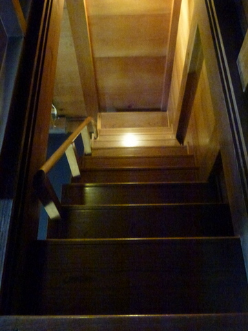 改築後(廊下)杉の古材柱を廊下でも活用、手洗いをしつらえ、トイレも増設。内装はスイス本漆喰左官&ドイツ・ウッドチップクロス張り