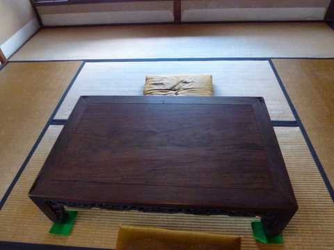 よくある普通の和室 「古材の柱」で作った「自在ガキ」をぶら下げ、囲炉裏風の設えに。