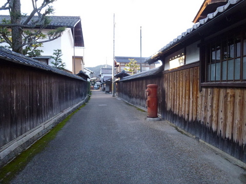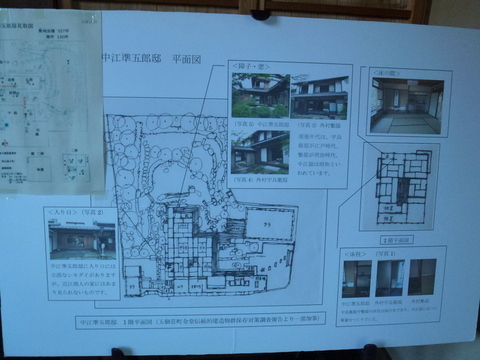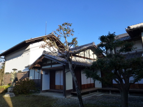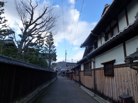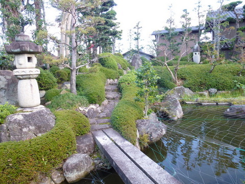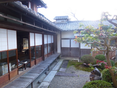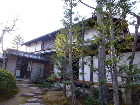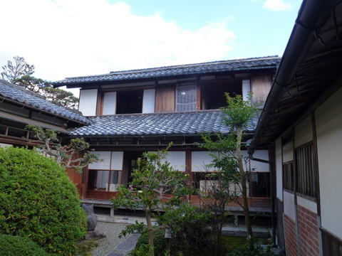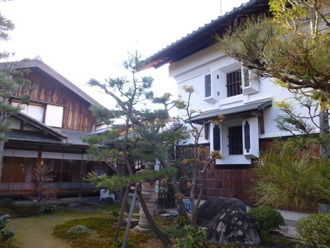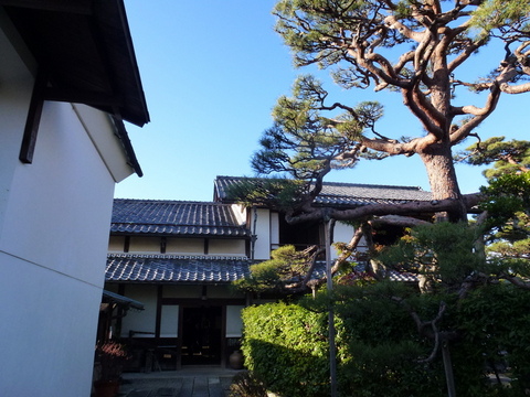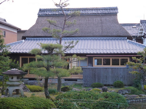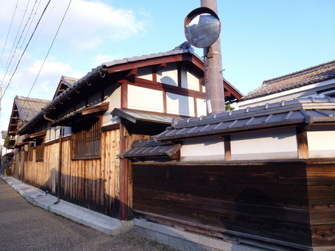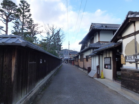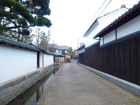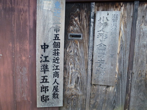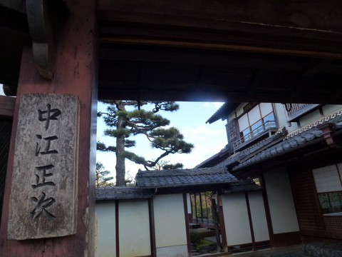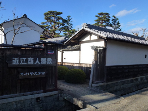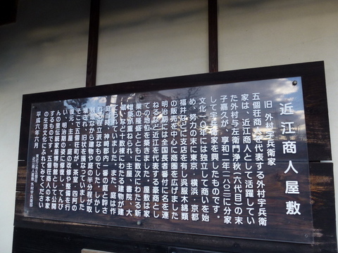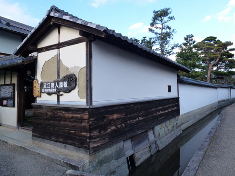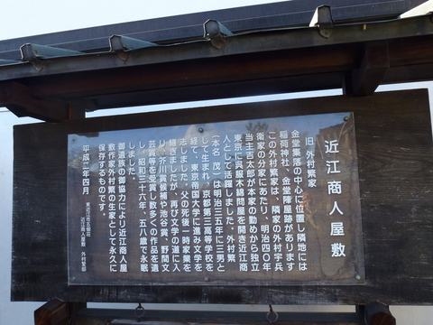 滋賀県近江八幡を北上、東近江市へと向かいました。五箇荘金堂地区には、近代日本経済の基礎を築いた近江商人の発祥地であり、現在も近江商人たちの本宅と伝統的な農家住宅が調和のとれた美しい町並みが保存されています。五個荘金堂地区の歴史は古く、奈良時代の古代神崎郡の中心地の一つであったとことから多くの寺が残されています。そして現在の集落ができたのは江戸時代に入ってからで、大和郡山藩の金堂陣屋を中心に古代の条里制地割に沿い弘誓寺や勝徳寺・浄栄寺などが周囲に配置され、その内側に集落が形成されました。五個荘金堂地区の近江商人は、主に江戸時代後期から明治・大正・昭和戦前期までの呉服や綿・絹製品を中心とした繊維業と、革新的商法によって商圏が全国に広がっていきました。現在も残る商人たちの本宅は、広大な敷地を板塀で囲み、敷地の中には切妻、入母屋造りの主屋が配置され、数寄屋風の離れや土蔵・納屋が建ち、池や築山を配した回遊式の日本庭園をもつのが特徴です。現在でも、この地にルーツを持つ老舗の繊維商社「御幸毛織」が紳士服業界で活躍されています。一方の農家住宅においては、茅葺屋根の主屋と納屋等を持つ伝統的な古民家の形式です。いずれも屋敷内に川渡や洗渡などできれいな水の用水路からの水を敷地に引き込み、生活用水として利用していました。これらの美しい街並みは、平成10年(1998年)12月25日、「五個荘金堂の町並み」として国の重要伝統的建造物群保存地区に選定されました。その理由は、繰り返しになりますが、五個荘金堂地区の町並みが、古代条里制地割を基本とし陣屋と寺を中心に形成された湖東平野の典型的な農村集落であり、かつての近江商人の本宅群と伝統的な農家住宅がともに優れた歴史的景観を維持管理してきたことから、次代に引き継ぐ価値が高いためとされています。作家の司馬遼太郎は、五個荘金堂地区を訪れた際に、この町並みの印象を「たがいに他に対してひかえ目で、しかも微妙に瀟洒(しょうしゃ)な建物を建てるというあたり、施主・大工を含めた近江という地の文化の土壌の深さに感じ入ったのである(出典 「街道をゆく」近江散歩)」と表現されています。