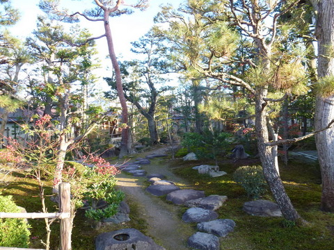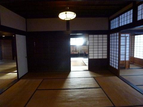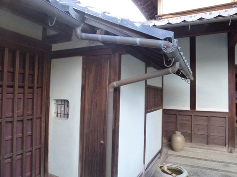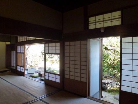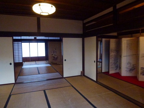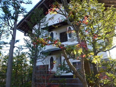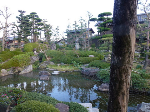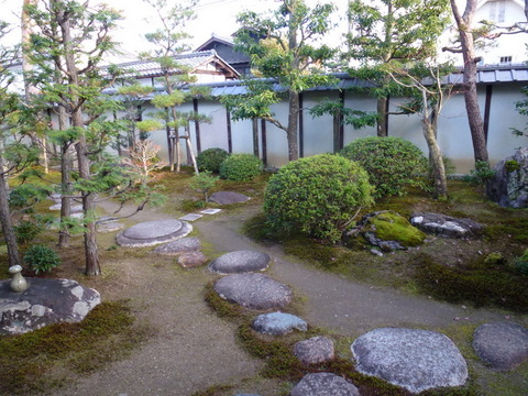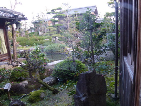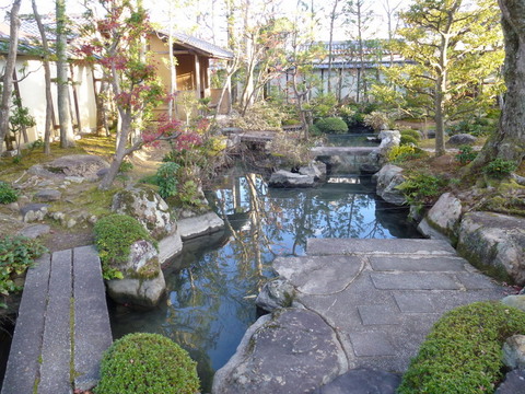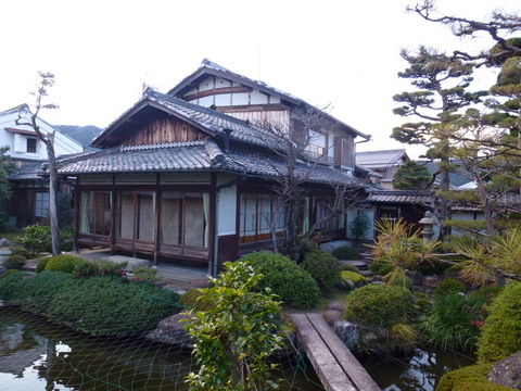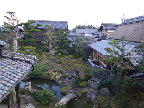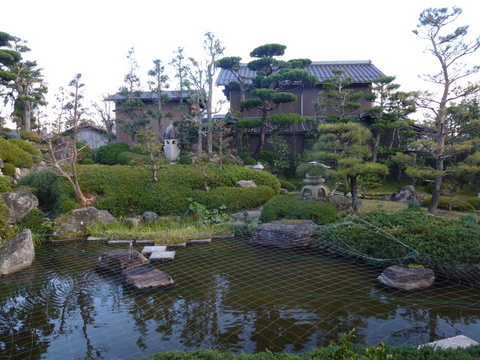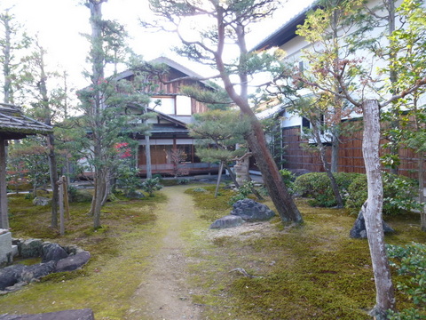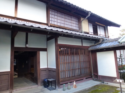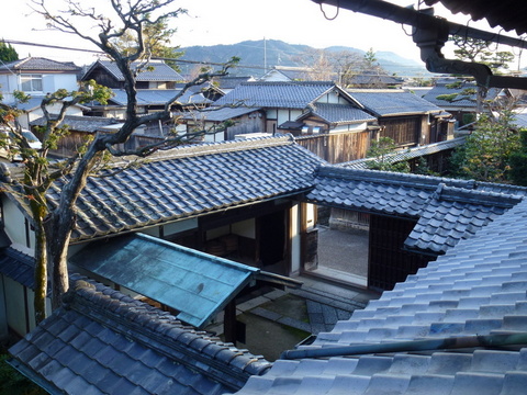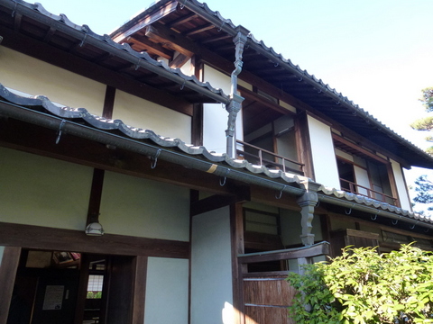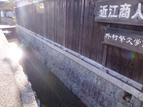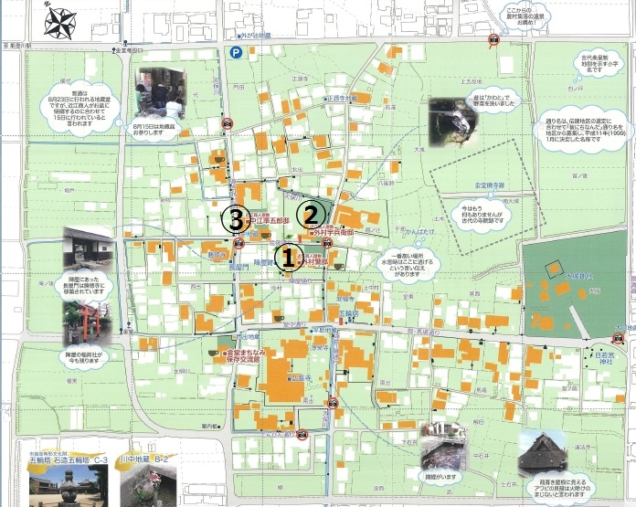 滋賀県近江八幡を北上、東近江市へと向かいました。五箇荘金堂地区には、近代日本経済の基礎を築いた近江商人の発祥地であり、現在も近江商人たちの本宅と伝統的な農家住宅が調和のとれた美しい町並みが保存されています。五個荘金堂地区の歴史は古く、奈良時代の古代神崎郡の中心地の一つであったとことから多くの寺が残されています。そして現在の集落ができたのは江戸時代に入ってからで、大和郡山藩の金堂陣屋を中心に古代の条里制地割に沿い弘誓寺や勝徳寺・浄栄寺などが周囲に配置され、その内側に集落が形成されました。五個荘金堂地区の近江商人は、主に江戸時代後期から明治・大正・昭和戦前期までの呉服や綿・絹製品を中心とした繊維業と、革新的商法によって商圏が全国に広がっていきました。現在も残る商人たちの本宅は、広大な敷地を板塀で囲み、敷地の中には切妻、入母屋造りの主屋が配置され、数寄屋風の離れや土蔵・納屋が建ち、池や築山を配した回遊式の日本庭園をもつのが特徴です。現在でも、この地にルーツを持つ老舗の繊維商社「御幸毛織」が紳士服業界で活躍されています。一方の農家住宅においては、茅葺屋根の主屋と納屋等を持つ伝統的な古民家の形式です。いずれも屋敷内に川渡や洗渡などできれいな水の用水路からの水を敷地に引き込み、生活用水として利用していました。これらの美しい街並みは、平成10年(1998年)12月25日、「五個荘金堂の町並み」として国の重要伝統的建造物群保存地区に選定されました。その理由は、繰り返しになりますが、五個荘金堂地区の町並みが、古代条里制地割を基本とし陣屋と寺を中心に形成された湖東平野の典型的な農村集落であり、かつての近江商人の本宅群と伝統的な農家住宅がともに優れた歴史的景観を維持管理してきたことから、次代に引き継ぐ価値が高いためとされています。作家の司馬遼太郎は、五個荘金堂地区を訪れた際に、この町並みの印象を「たがいに他に対してひかえ目で、しかも微妙に瀟洒(しょうしゃ)な建物を建てるというあたり、施主・大工を含めた近江という地の文化の土壌の深さに感じ入ったのである(出典 「街道をゆく」近江散歩)」と表現されています。