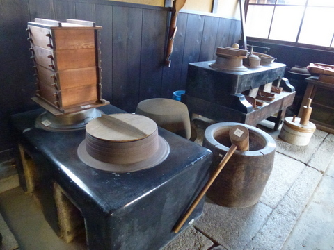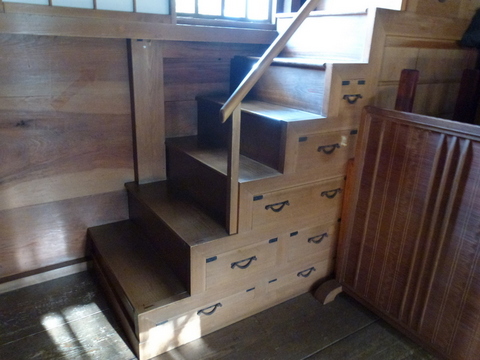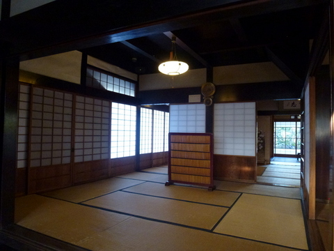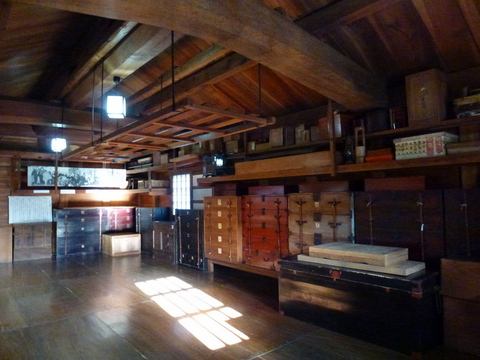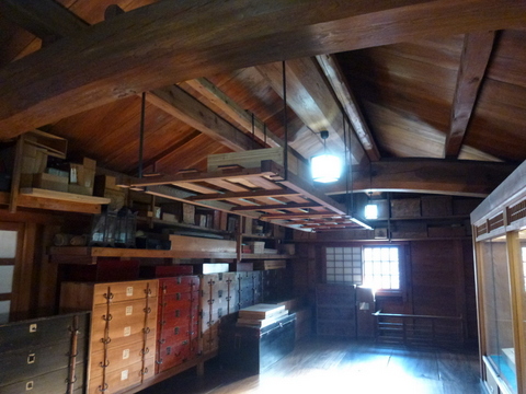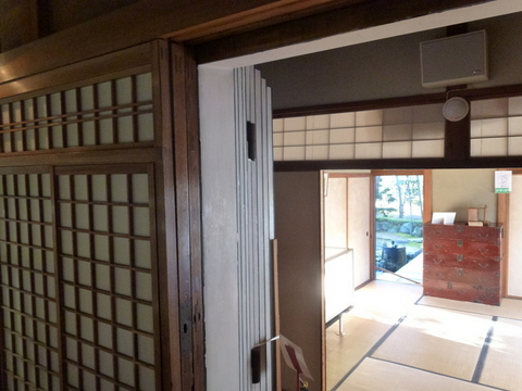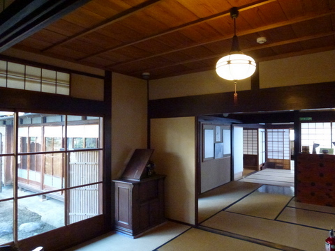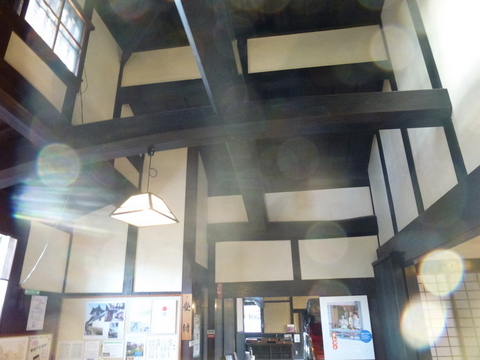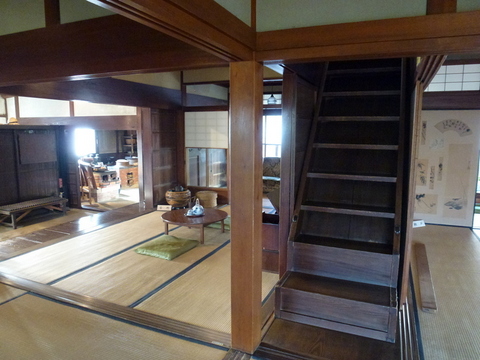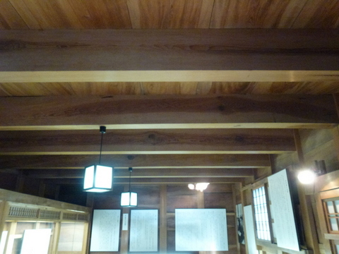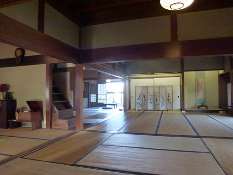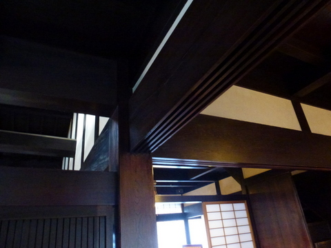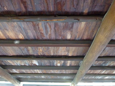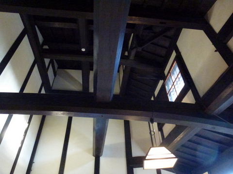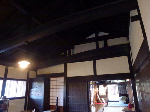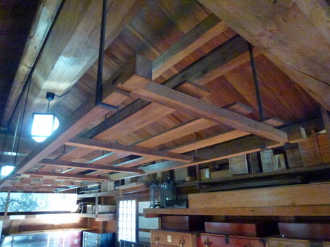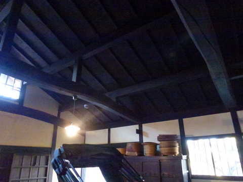 当時の貫工法(在来工法の原型)や竹小舞の土壁。地場の欅と松の曲がり梁が素晴らしい。