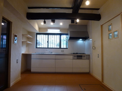 | 【Before】 【施工中】 キッチン台を組み、古材も取付け、LD側のカウンターもインストールして周辺を造作 仕上げ:弊社インテリアコーディネーターが詳細を現場で指示 古材に合わせて周りの造作家具なども自然塗料リボス+京都山中油店の鉱物顔料で着色 左官:カウンター天板、袖壁 天板の左官:クリスタルインレイ使用、蜜蝋で撥水加工 袖壁の左官:スイス漆喰、カルクウォール、エイジング加工 【After】 |