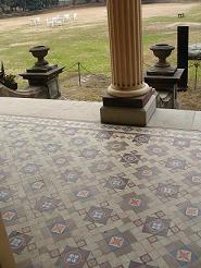 このタイルは、有名な英国ミントンのもので目地付きの張物ではなく、厚みのある石材を敷き詰めている。