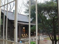 撞球場(ビリヤード室):洋館テラスからの撞球場。洋館から地下道で繋がる撞球場、スイスの山小屋風のデザインという。