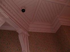 和館:三菱の財を成した造船をモチーフに和館廊下の船底天井に現す。