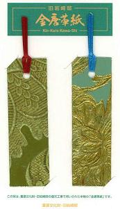 当時壁紙として実際に使われていた金唐革紙 「栞」としてリユースされ、1000円で購入できる。