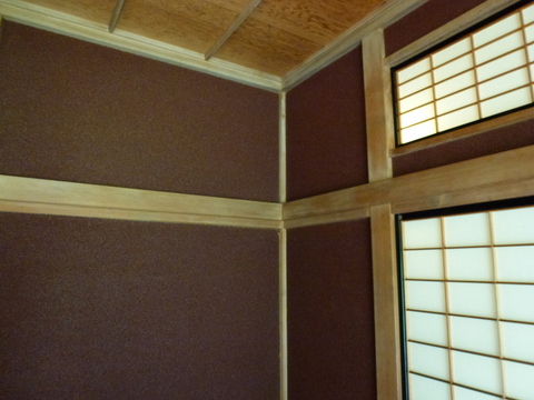 改築後(和室:1) 内装:ドイツ・ウッドチップクロス (和室:2)内装:愛知・桃山土壁(弁柄壁)