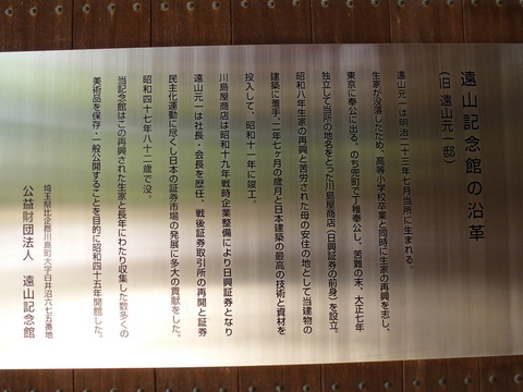 遠山記念館(とおやまきねんかん)は、埼玉県比企郡川島町にあります。ここは、日興証券創設者である遠山元一の邸宅を見事に保存し、美術コレクションを収集した別館とともに、1970年に開館しました。旧遠山家住宅について.旧遠山家住宅は、日興證券(現SMBC日興証券)の創立者である遠山元一氏が生家再興と母の安住の住まいとして、1936(昭和11)年に居住部が建てられ、その後は茶室などが整備されました。 東棟は生家の再興を象徴する豪農風、運営主体は公益財団法人遠山記念館で,歴史的建造物である遠山家の邸宅・庭園と美術工芸コレクションを保存公開し、文化芸術の振興に寄与することを目的に設置されています。また遠山邸の建物は、2018年度に国の重要文化財に指定されています。当日はこの遠山邸を巡りながら、ナビゲーターとして左官名人楠本新吉の弟子であり、現代左官の第一人者また、「磨きの小沼」として知られる小沼充をお招きし、また司会は現代左官との対話を纏め「左官回話」の著者で美術家の木村謙一さんに貴重な話を聞くことが出来ました。遠山記念館は遠山元一氏の邸宅・庭園として昭和8年から2年7か月の歳月を費やし全国から集められた当時の名工、大工、左官により建てられた極めて質の高い近代和風建築といえます。