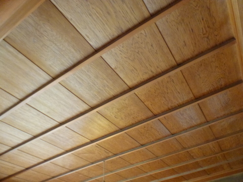 改装中:青木さんの地松の古材梁を2本活用、ドイツ・リボス自然素材塗料で綺麗に蘇る。