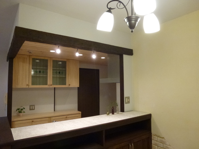 | 【Before】 【施工中】 キッチン台を組み、古材も取付け、LD側のカウンターもインストールして周辺を造作 仕上げ:弊社インテリアコーディネーターが詳細を現場で指示 古材に合わせて周りの造作家具なども自然塗料リボス+京都山中油店の鉱物顔料で着色 左官:カウンター天板、袖壁 天板の左官:クリスタルインレイ使用、蜜蝋で撥水加工 袖壁の左官:スイス漆喰、カルクウォール、エイジング加工 【After】 |
