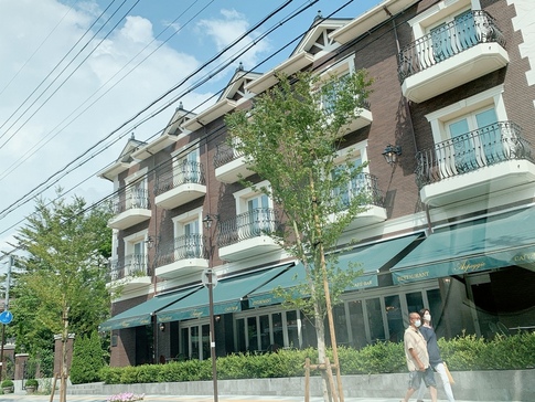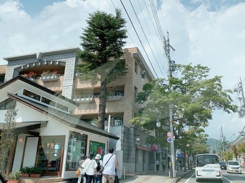「軽井沢駅」から「軽井沢銀座」へ向かう「軽井沢本通り」、近年外国資本による低層マンション、ホテルが建設されている
