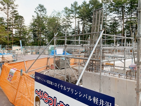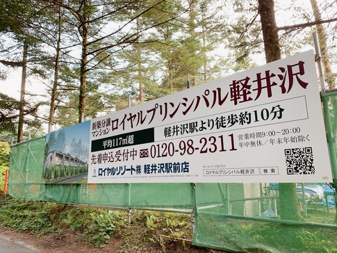 「西軽井沢」まで行かない「軽井沢本通り」から少し西に入った地点で分譲マンション建設中