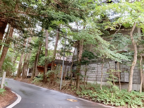 「旧軽井沢銀座」の入口から約500m、「つるや旅館」から奥の「見晴台」方面はが高級別荘地となる
