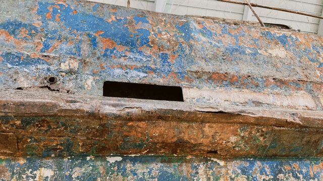 改装中:青木さんの地松の古材梁を2本活用、ドイツ・リボス自然素材塗料で綺麗に蘇る。