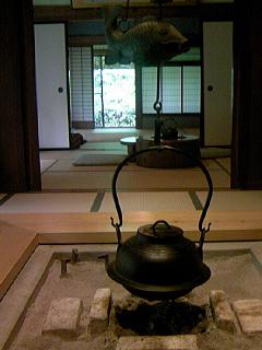 また、囲炉裏の上の「火棚」という格子の棚は乾燥させたい食べ物を置いた。 古民家の宿・梅庵