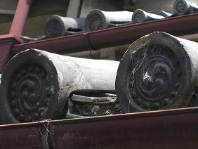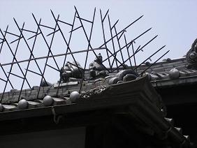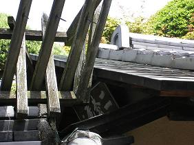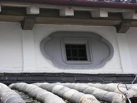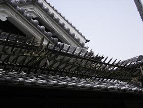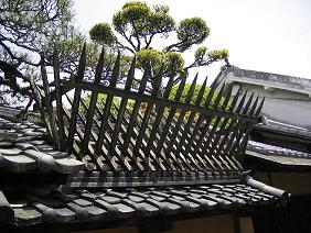 隣町の「樫原市」は瓦の産地で有名であたっことから、御所にも多大な影響をもたらしました。古い巴瓦の模様が美しい。