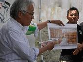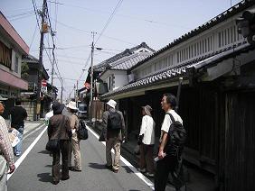 大和平野の西南部、ダイヤモンドの原石のょうな江戸時代民家が眠る「御所市御所町」に今、町興しの住民運動が始まっています。半数以上が伝統的建造物のこの街の価値に気づいた人達が、次代にこの遺産を引継ごうと動き始めています。私達30名はこの手付かずの街並みを見学し地元NPO、行政の方々と保存運動について意見交換しました。京町家と違うところは「広い間口、大きな敷地」京都が「間口納税」、奈良は「敷地納税」であったためです。背割り下水という用水路が町の隅々を流れ、周辺は環濠が囲む独特の街並を形成しています。