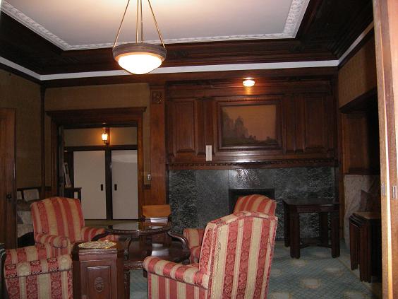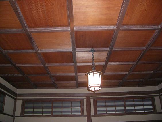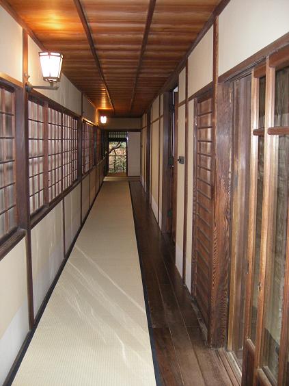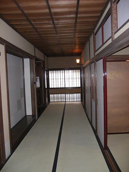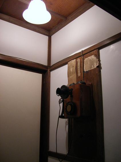 「玄関〜廊下」増築された玄関・天井は格天井、玄関脇にある電話室、廊下の格天井と建具が美しい