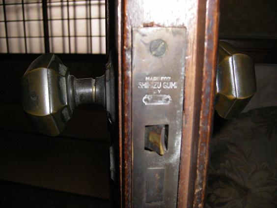 清水建設が施工、ドアノブにロゴ発見↓ 茶室の水や、床の間の違い棚、襖の雲母が豪華↓
