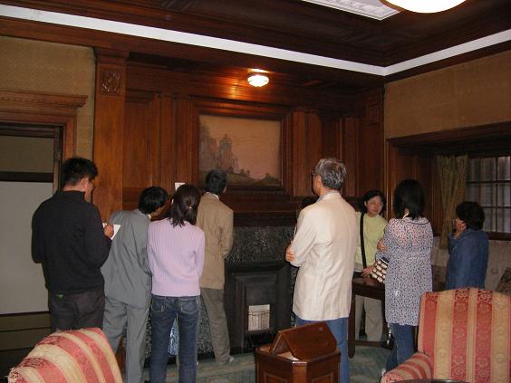 ↑この床板を外すと収納、浴室のシャワーは大変目面しいボイラーで沸かされた。↑見学の後半は「魚柄仁之助さん」の講話