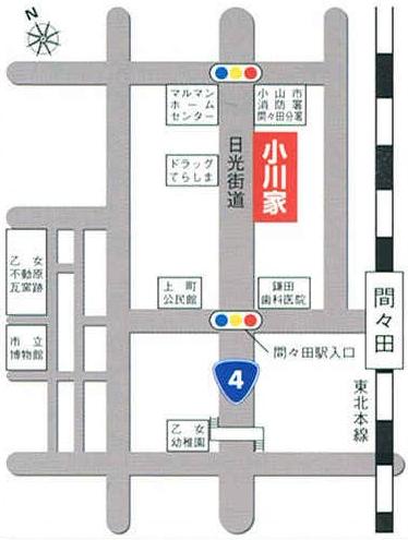 ●小川家は小山市乙女の思川河岸の肥料問屋として明治時代に栄えた旧家です。その後、水運から鉄道の時代に合わせるかたちで、現在の日光街道国道4号沿いに移転したのが大正初期です。主屋の保存状態は良く伝統的和風住宅でありながら小屋組みは洋風意匠です。中央に表門、北に土蔵、正面に主屋、南東に2棟の倉庫、南に店舗を構えた【小川商店・屋号:車屋】が大正元年に開店しました。現在はお店の部分が壊されていますが、表門以外は棟札や墨書が残されており、建築の年代が分かります。