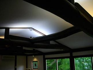 当時の貫工法(在来工法の原型)や竹小舞の土壁。地場の欅と松の曲がり梁が素晴らしい。
