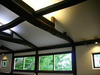 改装中:青木さんの地松の古材梁を2本活用、ドイツ・リボス自然素材塗料で綺麗に蘇る。