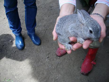 トラクター体験が終わり、ウサギに餌やり、その辺りの草をむしって食べる葉、全く食べない葉があることに気づきました