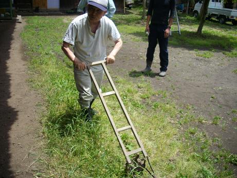 手動式の耕運機 昔の農作業は大変な労力だたろう・・・