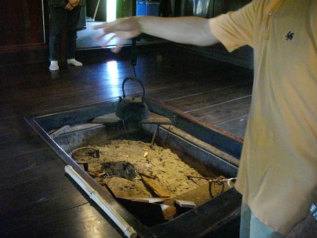 囲炉裏は奥の座敷側に主人(お父さん)手前側に子供たち、そして一番土間側にお母さんという順番が決められていました