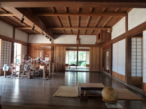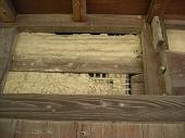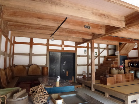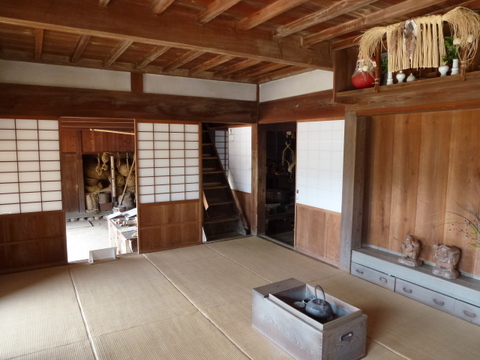 当時の貫工法(在来工法の原型)や竹小舞の土壁。地場の欅と松の曲がり梁が素晴らしい。