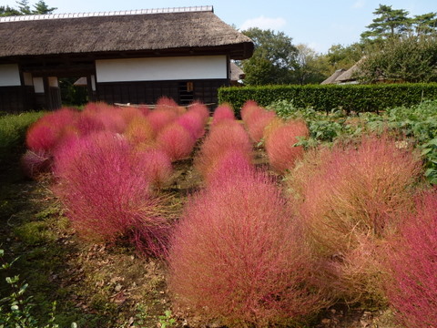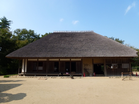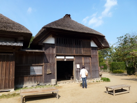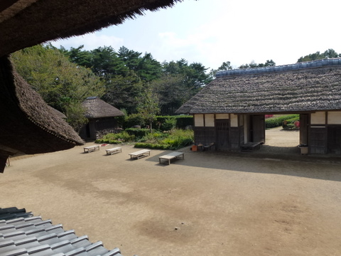 成田空港へ向かう途中の国道沿いに、「房総の村」はあります。 この屋外の民家村は以前から一見の価値はあること、JMRAでも数度の視察見学会が開催されたことなどからそのうち見学に行こうと思っていた場所です。 わたしは今年10月12日~19日までの間、米国の住宅リモデリング視察とニューアーバニズムによる都市開発視察に参加しましたが、集合が夕方であったため成田空港へ向かう途中の午前中に視察が可能となりました。 期待通りの素晴らしい民家園であり、当日は社会見学にきた小中学校の生徒たちの姿を見たり、丘陵地帯にある園内をハイキングを兼ねて訪れる人々、そしてお弁当を広げる広場として市民の憩いの場となっている様子でした。 「房総のむら」は、房総の伝統的な生活様式や技術を来館者が直接体験するとともに、県内各地から出土した考古遺物や、武家・商家・農家などの展示を通して歴史を学ぶことを目的とする博物館として昭和61年、房総風土記の丘に隣接する場所に開館し、平成16年4月、房総風土記の丘と統合されています。 園内ではみる・きく・かぐ・あじわう・ふれるの五感を通して、房総地方に古くから伝わる文化への理解を深めることができます。 また、「春のまつりをはじめとした、四季折々のまつり」「むらの縁日・夕涼み」「むらのお正月」や演武、民俗芸能の上演、企画展など数多くの催しを実施しています。 総面積約32ha の敷地内には、復元古墳「竜角寺古墳群第101号古墳」など古墳78基のほか資料館もあります。また明治32年(1899年)建造の学校建築である重要文化財「旧学習院初等科正堂」(成田市)と、安永9年(1780年)に安房郡丸山町(現南房総市)に建てられた重要文化財「旧御子神谷住宅」(成田市)、寛延4年(1751年)に富津市亀沢に建てられた県指定有形文化財「旧平野家住宅」(印旛郡栄町)の2棟の民家建築が移築公開されています。