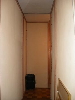 改築後(廊下)杉の古材柱を廊下でも活用、手洗いをしつらえ、トイレも増設。内装はスイス本漆喰左官&ドイツ・ウッドチップクロス張り