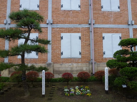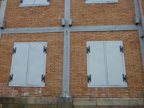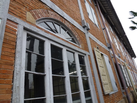 主要な建物は、木の骨組みに、壁に煉瓦を積み入れて造る 「木骨煉瓦造」で建てられました。煉瓦という西洋の新しい材料を取り入れながら、屋根は伝統的な日本瓦で葺くなど、日本と西洋の建築技術を見事に融合して建てられました。建造物の主要資材は 石、木、煉瓦、瓦で構成され、鉄枠のガラス窓や観音開きのドアの蝶番などはフランスから運び込まれたものでした。