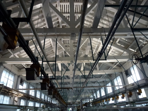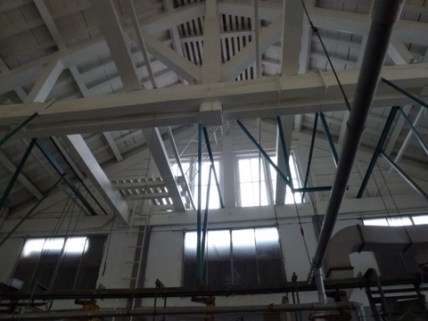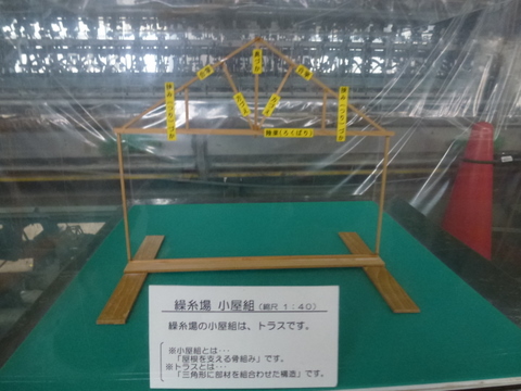 繰糸場は長さ約140.4メートル、幅12.3メートル、高さ12.1メートルで、当時、世界的にみても最大規模でした。フランス人技師らの工場建設決定から僅か、1年後の明治4年(1871年)から建設は始まり、翌年の明治5年(1872年)7月に完成、10月4日には歴史的な