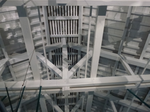 中心となる材木は主に官林で伐採しました。杉の木の大きいものは 妙義山、松の木は吾妻から調達し、小さい材木は近くの山林から集めました。また礎石の石材は連石山(甘楽町)から切り出してつくりました。煉瓦は、フランス人技術者が瓦職人に作り方を教え、福島町(現甘楽町福島)の