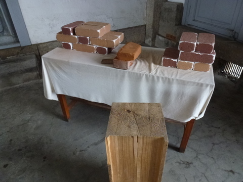 笹森稲荷神社東側に窯を築き瓦と共に焼き上げました。その中心となったのは埼玉県深谷からやってきた瓦職人でした。煉瓦の目地には、セメントの代用として漆喰を使いました。原料となる石灰は下仁田町青倉・栗山産のものでした。煉瓦は、フランス積みと呼ばれる工法で積まれていますが、これはフランス人が関係していたことを示すとともに建物に