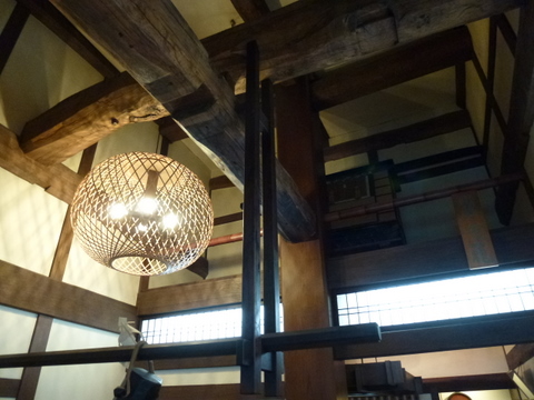 当時の貫工法(在来工法の原型)や竹小舞の土壁。地場の欅と松の曲がり梁が素晴らしい。