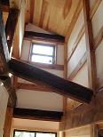 山梨県塩山市から190年余の土蔵が移築され伝統的な貫工法で新民家が誕生しました。古材の構造材には欅・松が多用され、新材に桧と杉を生かした住居であると同時に断熱対策などに最新の技術を融和して再生されました。パッシブソーラーによる全体熱還流、窓は、木製内建具とアルミ枠高断熱ペアガラスでの断熱対策。古来の伝統的な木材保存・塗料・古色としてベンガラ・蜜蝋を、壁の仕上げに土佐漆喰を使用した温故知新の見事な新民家の完成です。