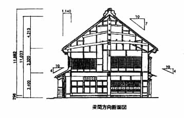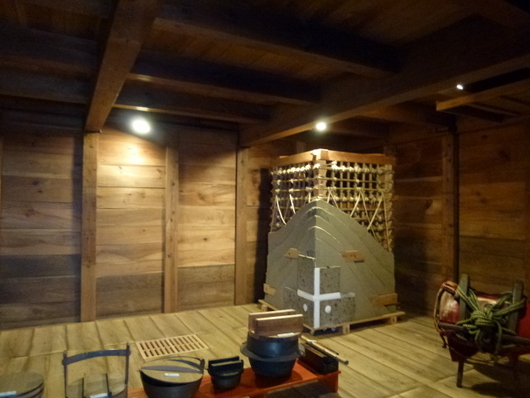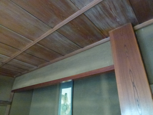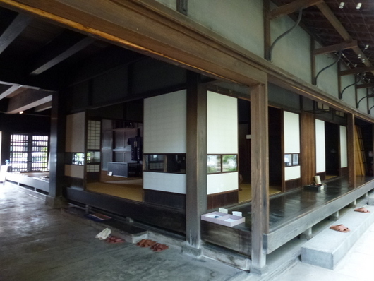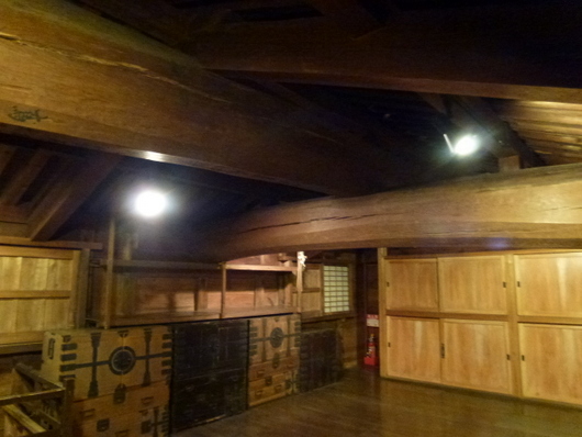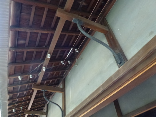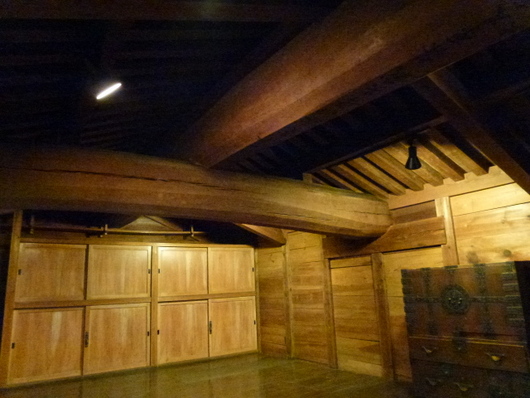 当時の貫工法(在来工法の原型)や竹小舞の土壁。地場の欅と松の曲がり梁が素晴らしい。